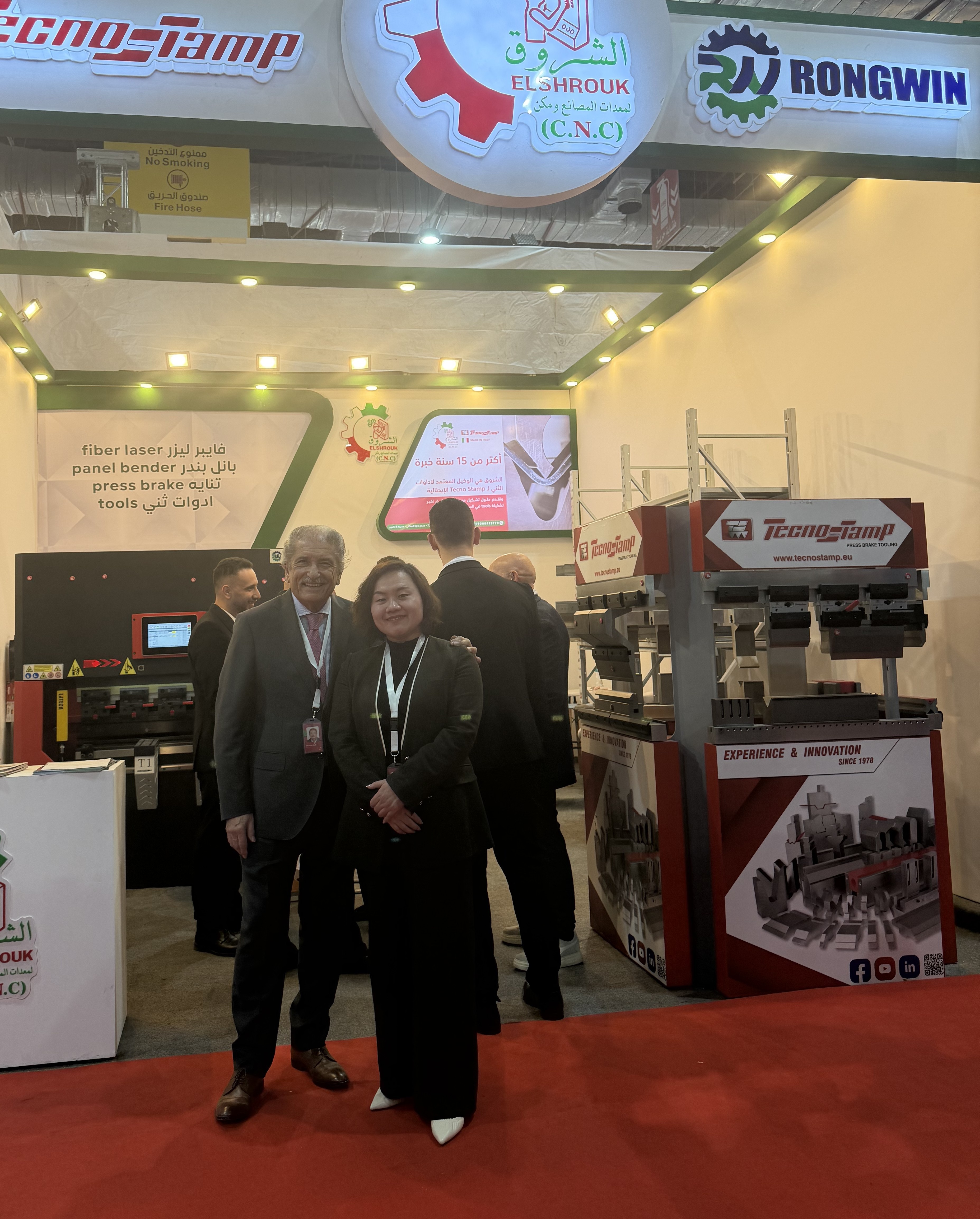 RONGWIN Company showcased its precision bending machine and its independently developed intelligent MetalworkMaster software at the CIEC exhibition in Cairo, Egypt (Hall 2, Booth D15). At the exhibition, the company's integrated hardware and software solutions deeply demonstrated its unwavering commitment to long-term cooperation, attracting a large number of customers to stop and exchange ideas, laying a solid foundation for further cooperation.